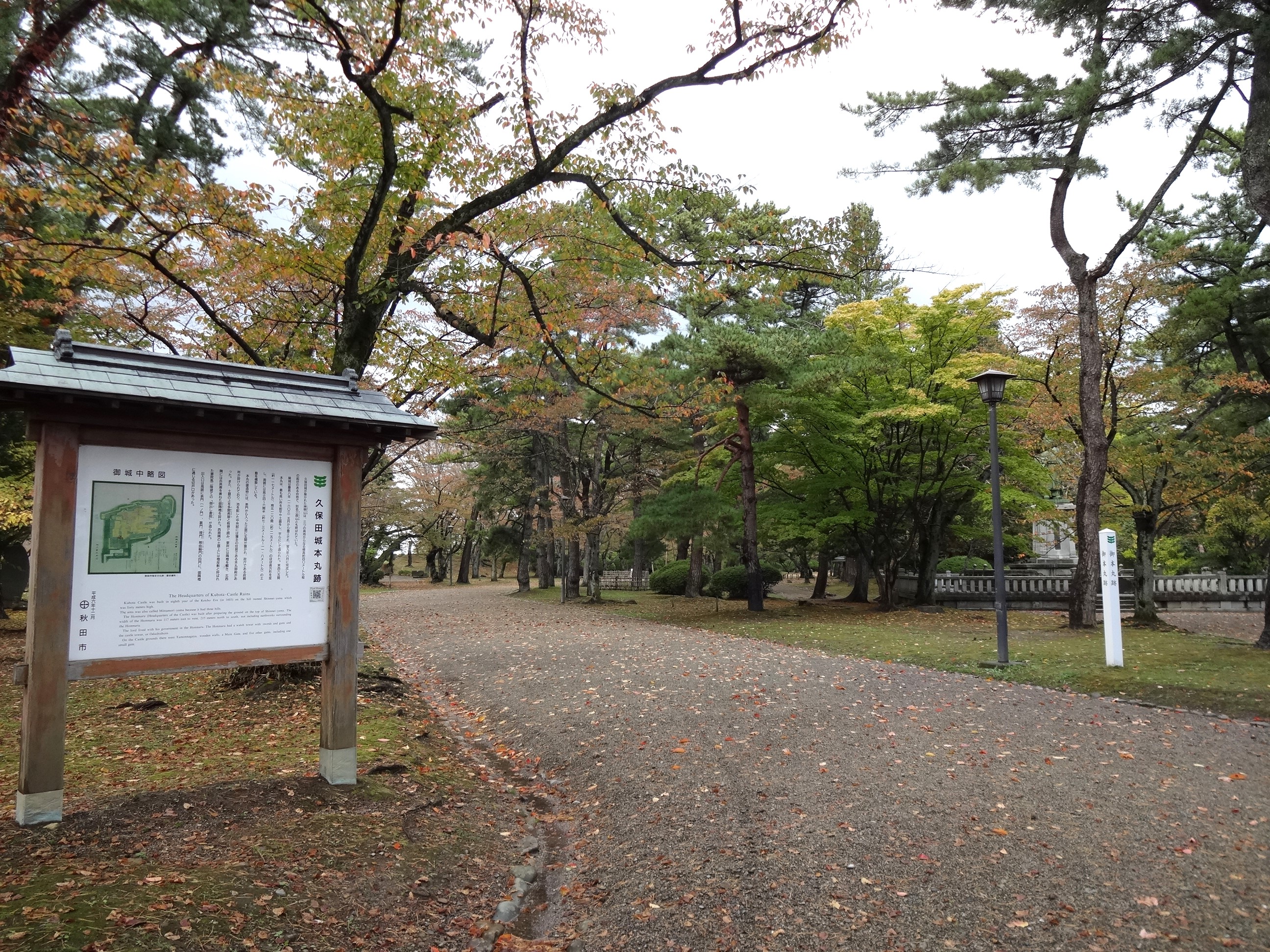 久保田藩主の居城跡。石垣や天守閣がないことが特徴。
