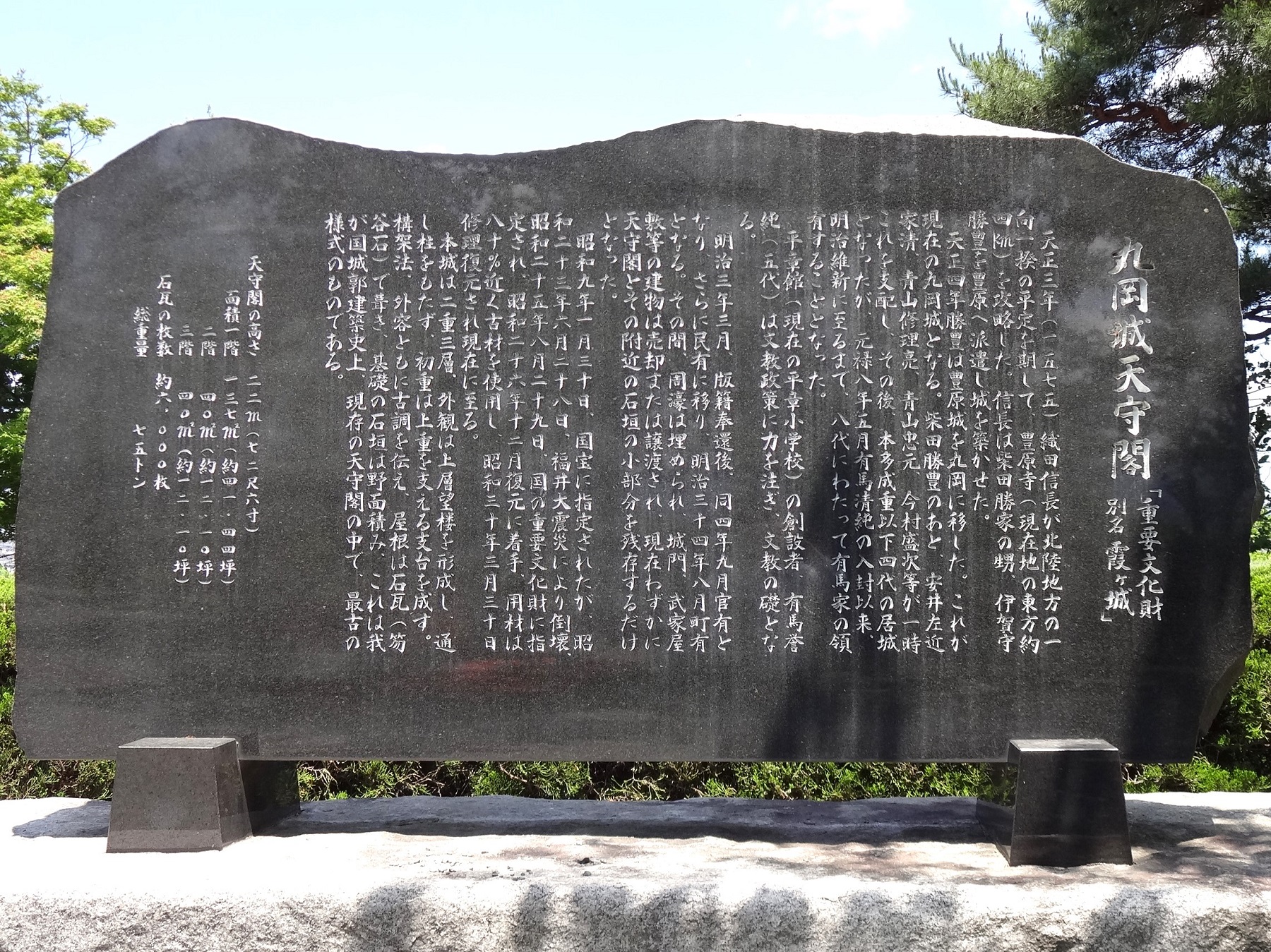 北陸地方に残る唯一の現存天守。丸岡藩主・本多氏、有馬氏の居城。
