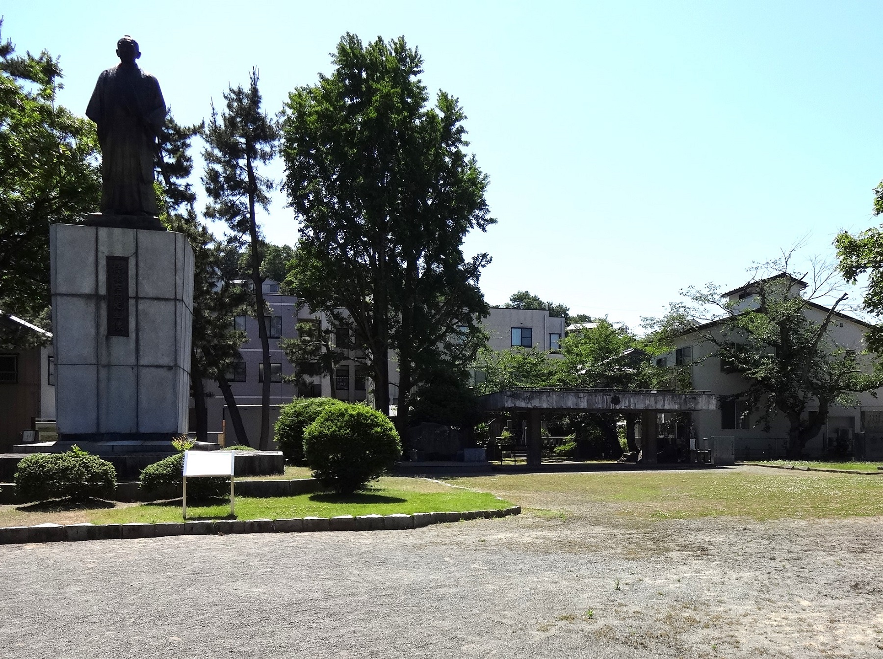 福井にある橋本家菩提寺跡。現・左内公園。橋本左内銅像、墓所の他、芭蕉宿泊地洞哉宅跡碑がある。