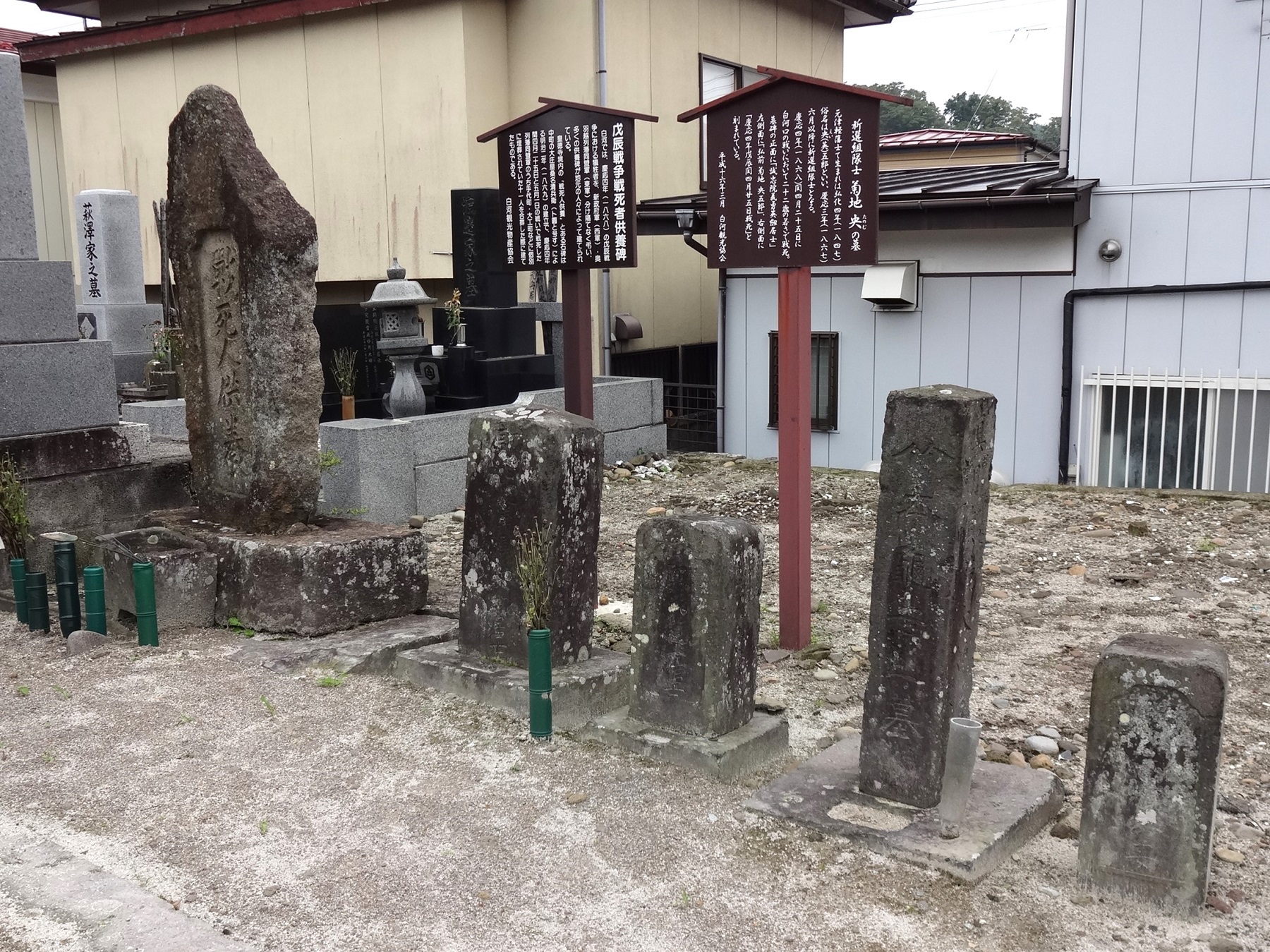 戊辰戦争の東軍戦死者の供養碑、新選組隊士・菊地央の墓がある。