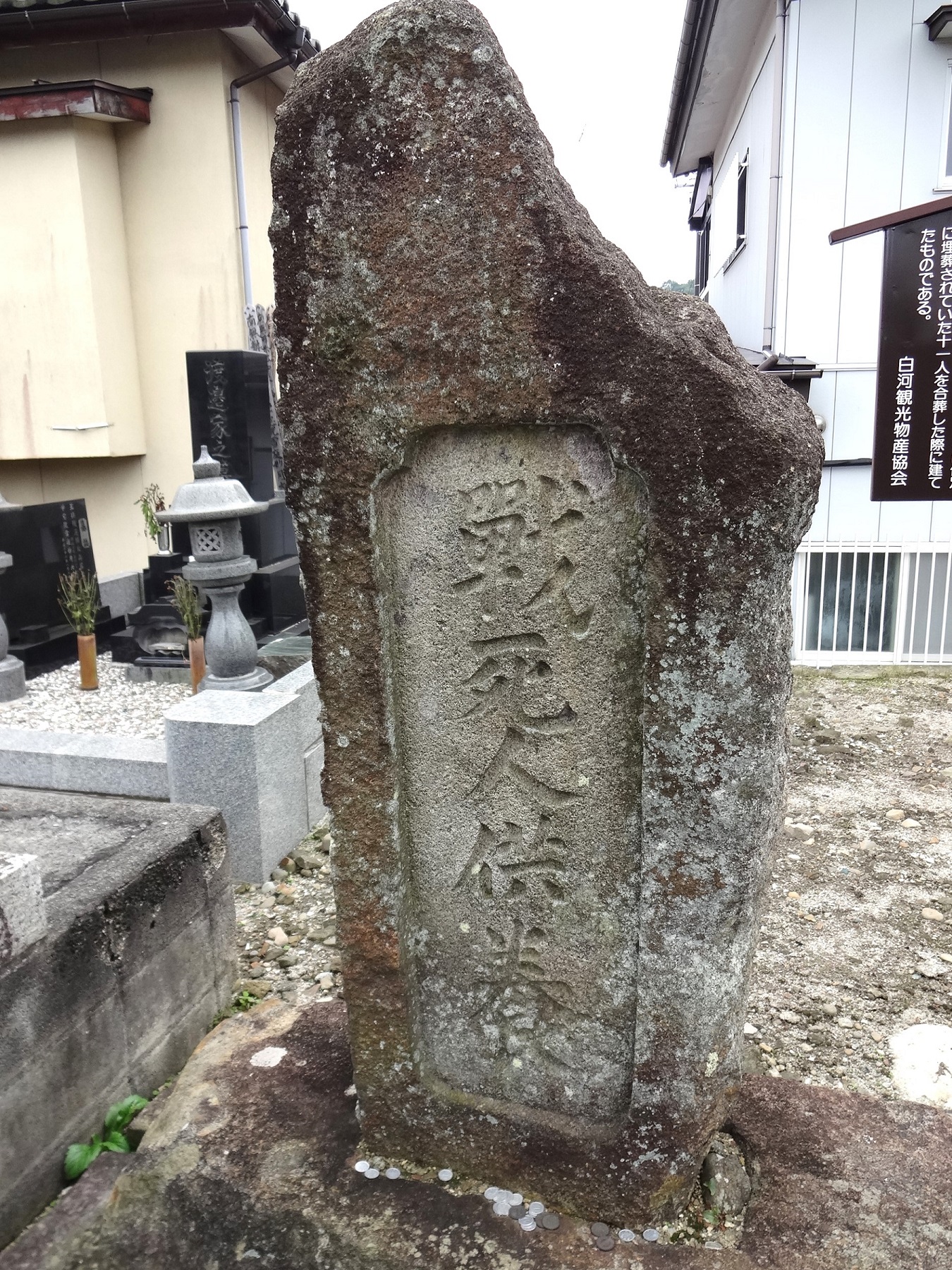 戊辰戦争の東軍戦死者の供養碑、新選組隊士・菊地央の墓がある。また、会津地方の民謡「会津磐梯山」に登場する小原庄助の墓がある。