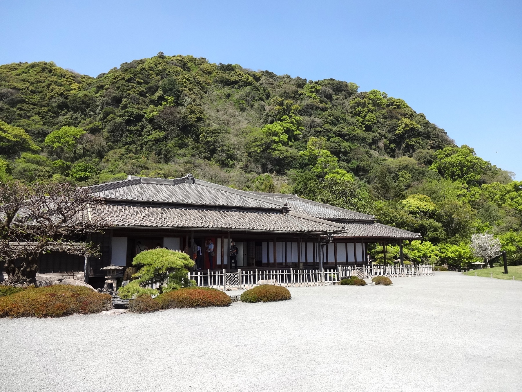 桜島を築山に、錦江湾を池に見立てた借景庭園。世界遺産「明治日本の産業革命遺産 製鉄・製鋼、造船、石炭産業」の構成資産のひとつとして、萩反射炉や韮山反射炉などと共に登録されている、反射炉跡がある。江戸時代初期に琉球王国から贈られた望嶽楼では、幕末の藩主・島津斉彬が長崎海軍操練所にいた勝海舟と会談している。