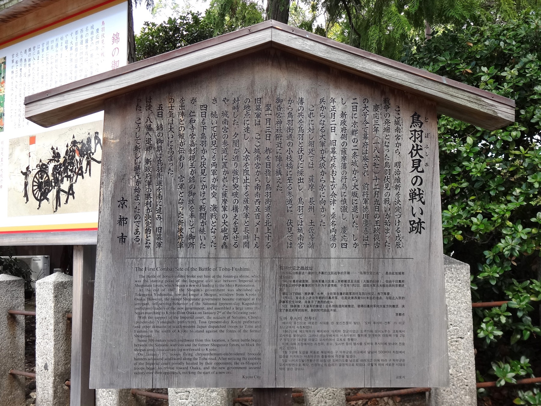 境内には鳥羽伏見の戦いの解説板が設置されている。
