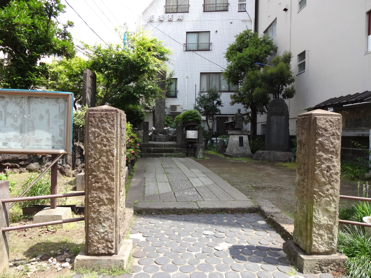 慶応4年(1868年)板橋平尾宿にあった一里塚で斬首となった新選組局長・近藤勇の遺体は、滝野川三軒家の無縁塚に埋葬された。この場所に、永倉新八が発起人となって供養塔が建てられた。