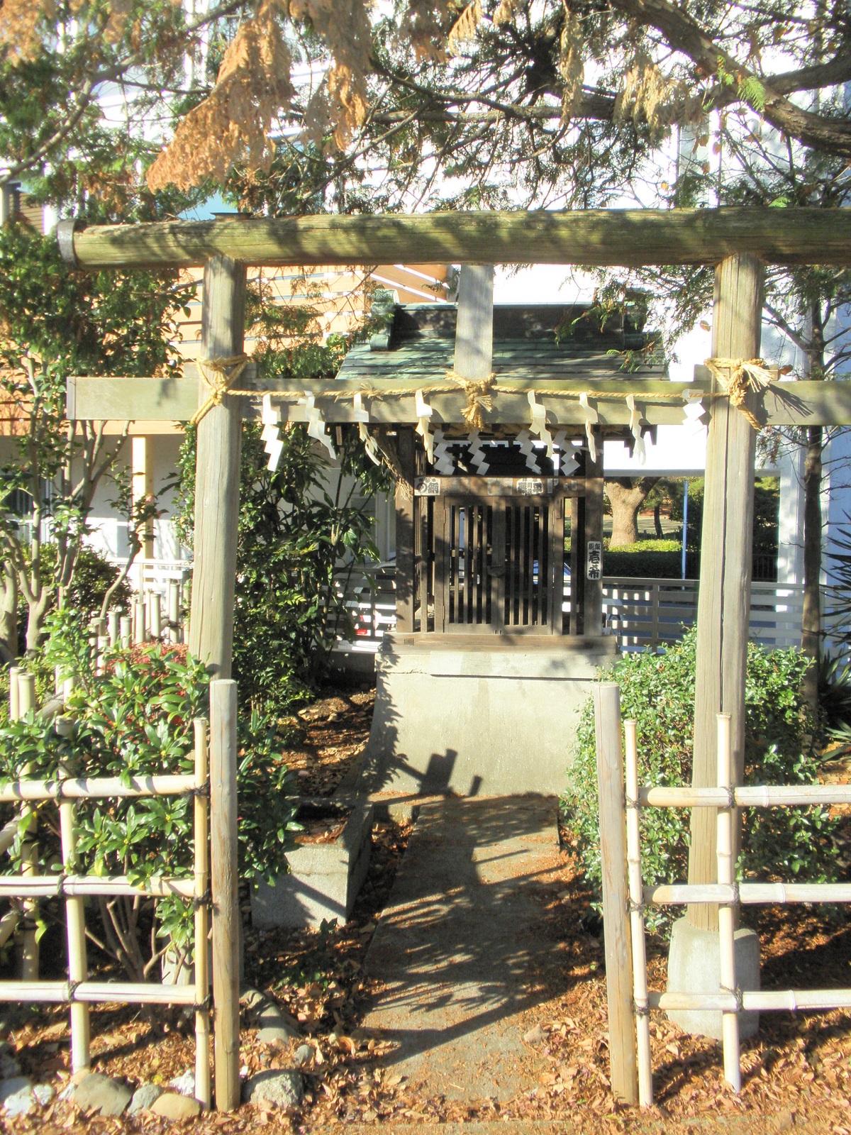近藤勇生家跡:この地は新選組局長近藤勇の生家跡である。近藤勇は、天保5年(1834)宮川久次郎の三男(幼名勝五郎)としてこの地に生まれ育った。15歳の時天然理心流近藤周助の養子となり近藤姓を名乗った。当時、宮川家の屋敷は面積約七千平方メートルの広さがあり、建物は母屋のほか蔵屋敷、文庫蔵、乾燥納屋、地下蔵、農具入納屋等があり、周囲はケヤキ、カシその他の大木や竹林が茂っていた。現在の跡地は、屋敷の東南部に位置し、昭和18年に家がとりこわされるまで使用していた井戸を残すのみである。近藤神社:近藤神社は、徳川将軍家のために、忠誠心を貫いた近藤勇を尊び、昭和初期に東京一円の有志達によって近藤勇の生家跡に建立された。その後、荒れるにまかせていた社を一時別の場所に移設していたが、昭和52年に生家跡が市の史跡に指定されたのを受けて、昭和54年に戻したものである。