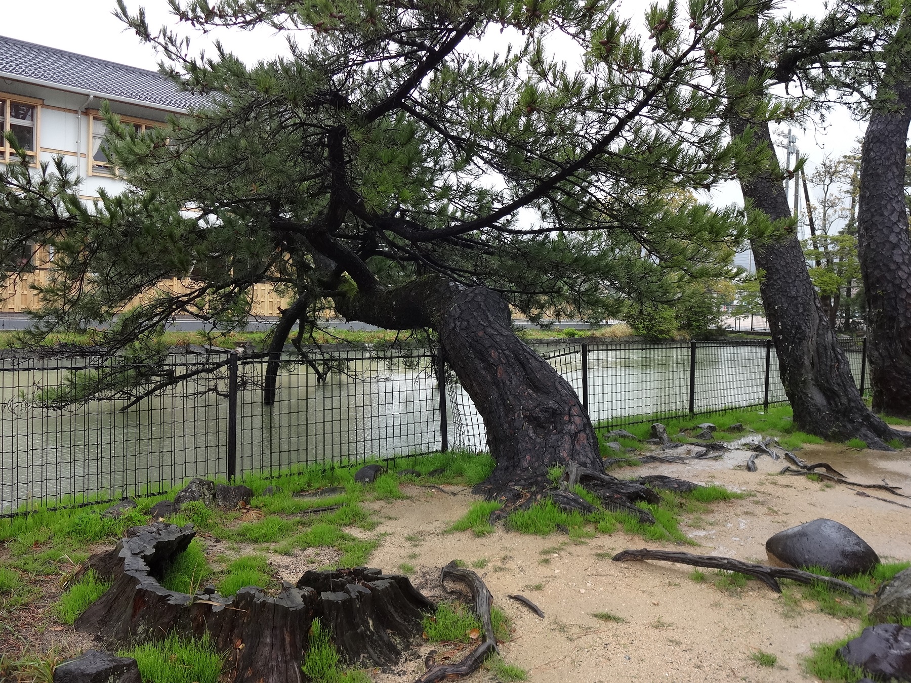 長州藩の藩校、明倫館の跡地。門、剣術場、水練池などの遺構が見られる。